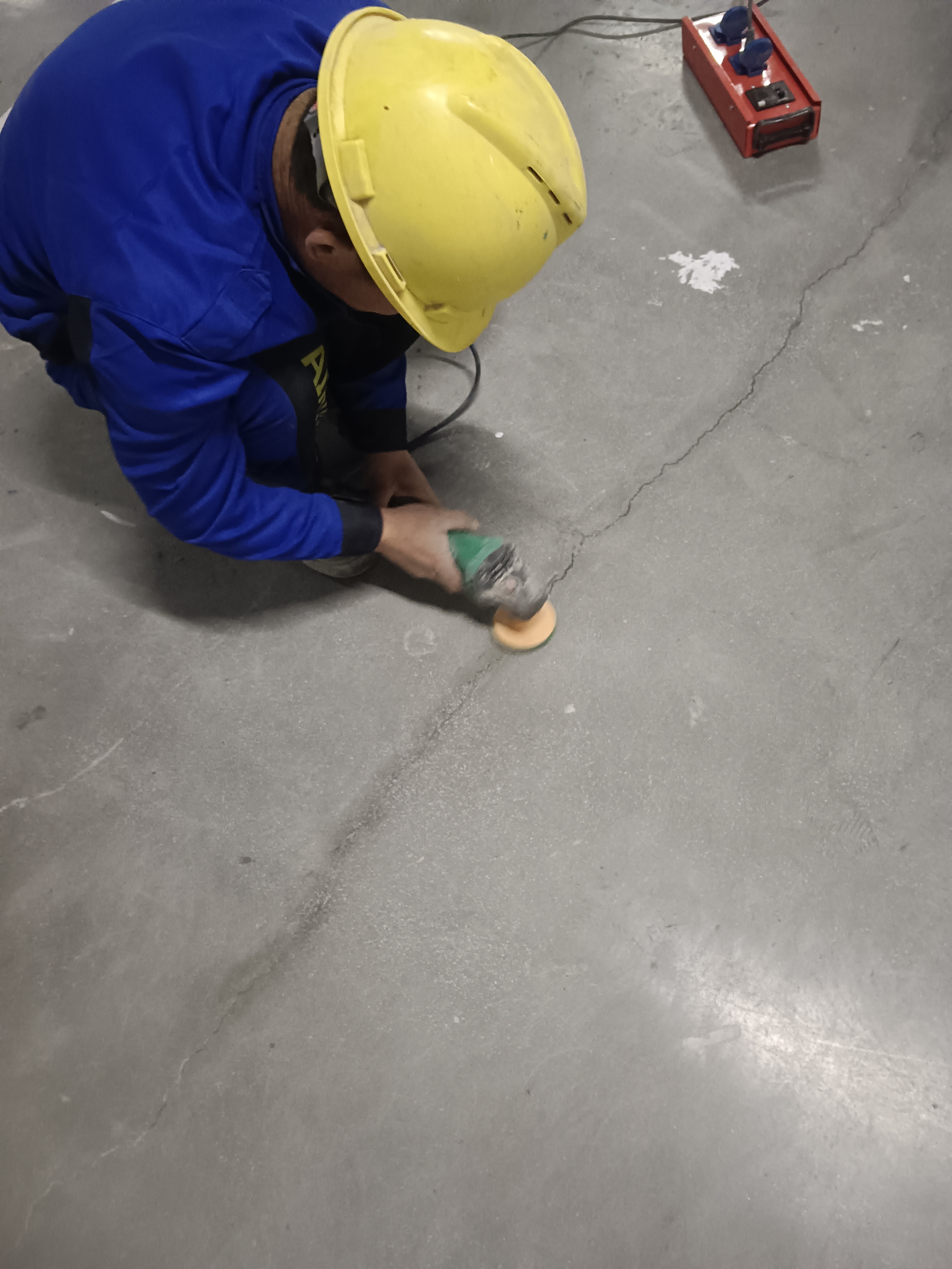 保利地产车库通道金刚砂龟裂纹修复 金刚砂地坪固化项目由南京伊洁特斯公司施工中
